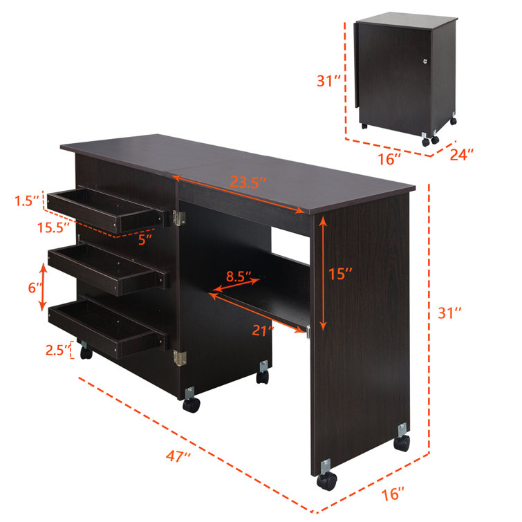 Nsdirect 47 X 16 Foldable Sewing Table With Sewing Machine Platform And Wheels Reviews Wayfair